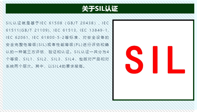眾所周知,SIL認證主要是對安全設備的安全完整性等級(SIL)或者性能等級(PL)進行評估和確認的一種第三方評估、驗證和認證。